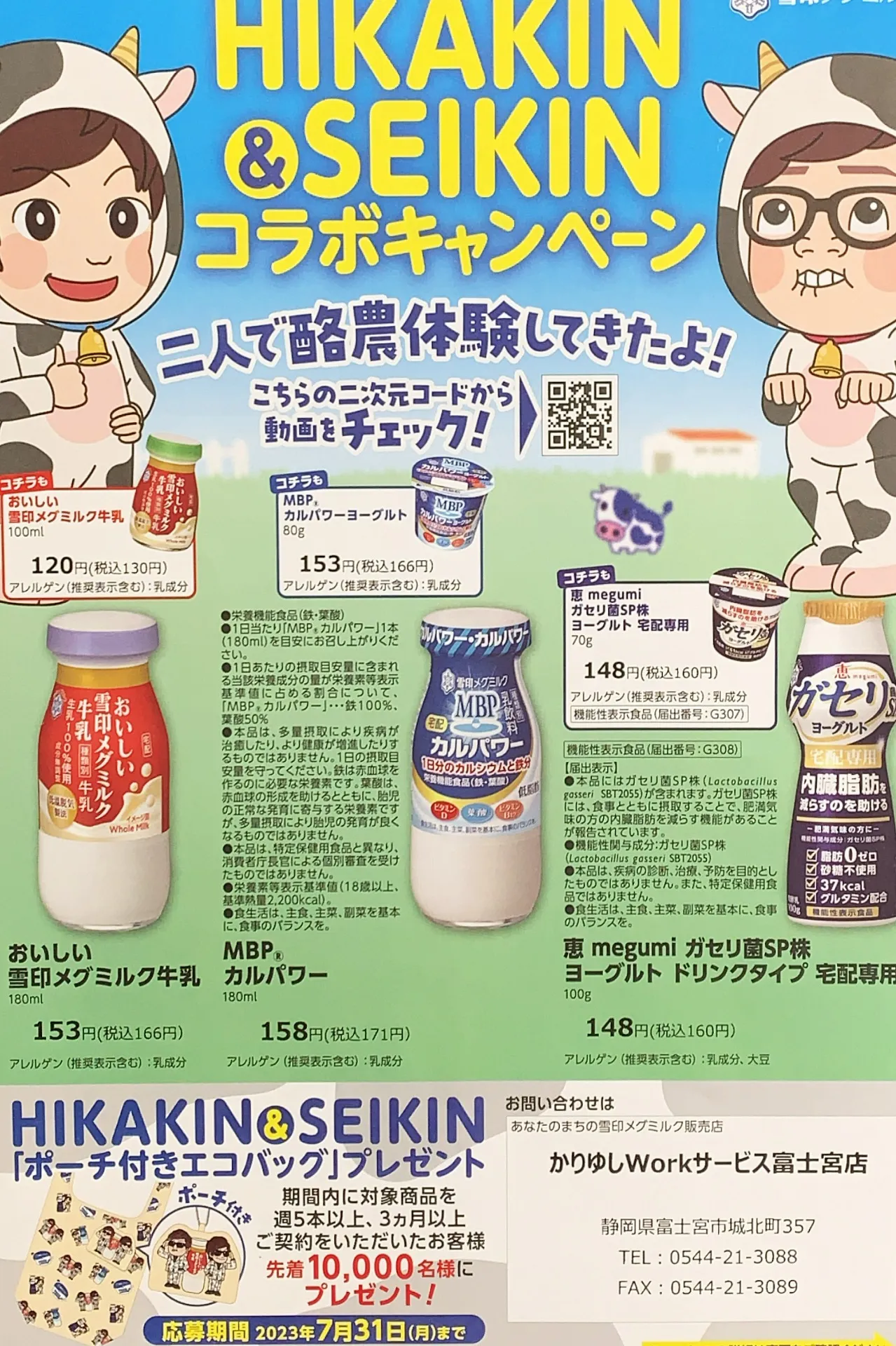雪印メグミルクや【メイトー】の牛乳やヨーグルト・機能性食品などを取り扱っており、ご自宅まで配達いたします。富士宮市を中心にご注文いただいたお客様の元へお届けしており、商品の保存管理も徹底しています。